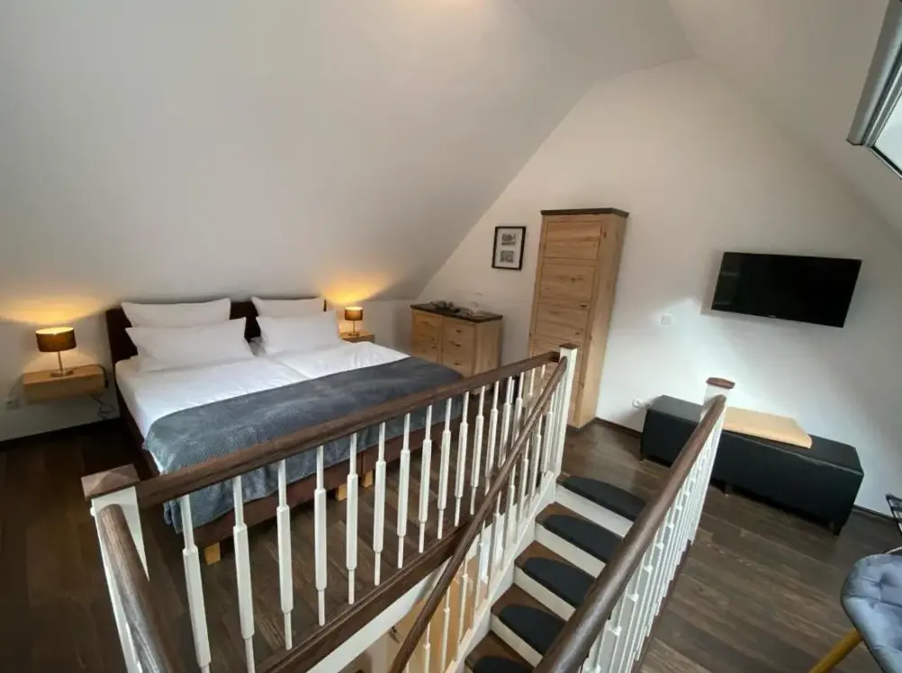Für Gäste mit schweren Gepäck und nicht mehr die fittesten ist der Weg vom Parkplatz zur Unterkunft beschwerlich. Nur 1. Stunde als Frühstückszeit ist festgelegt. Reinigung der Zimmer und Handtuchwechsel nach 3 Tagen. Keine Flexibilität beim Frühstück. Zb Rührei